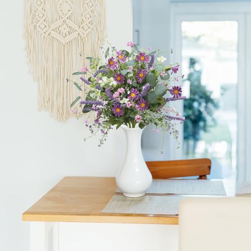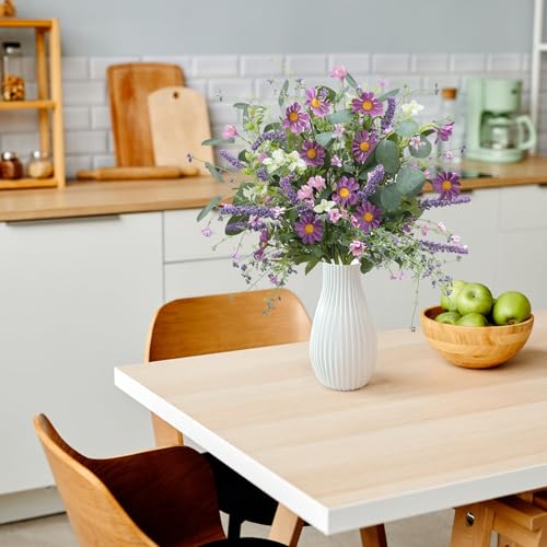 4 Bundles Artificial Flower Bouquet Silk Daisy Flowers Lavender Fake Flowers Bouquet Spring Floral Arrangements Fake Wildflowers Bouquet for Home Office Indoor Table Vase Wedding Party Decor