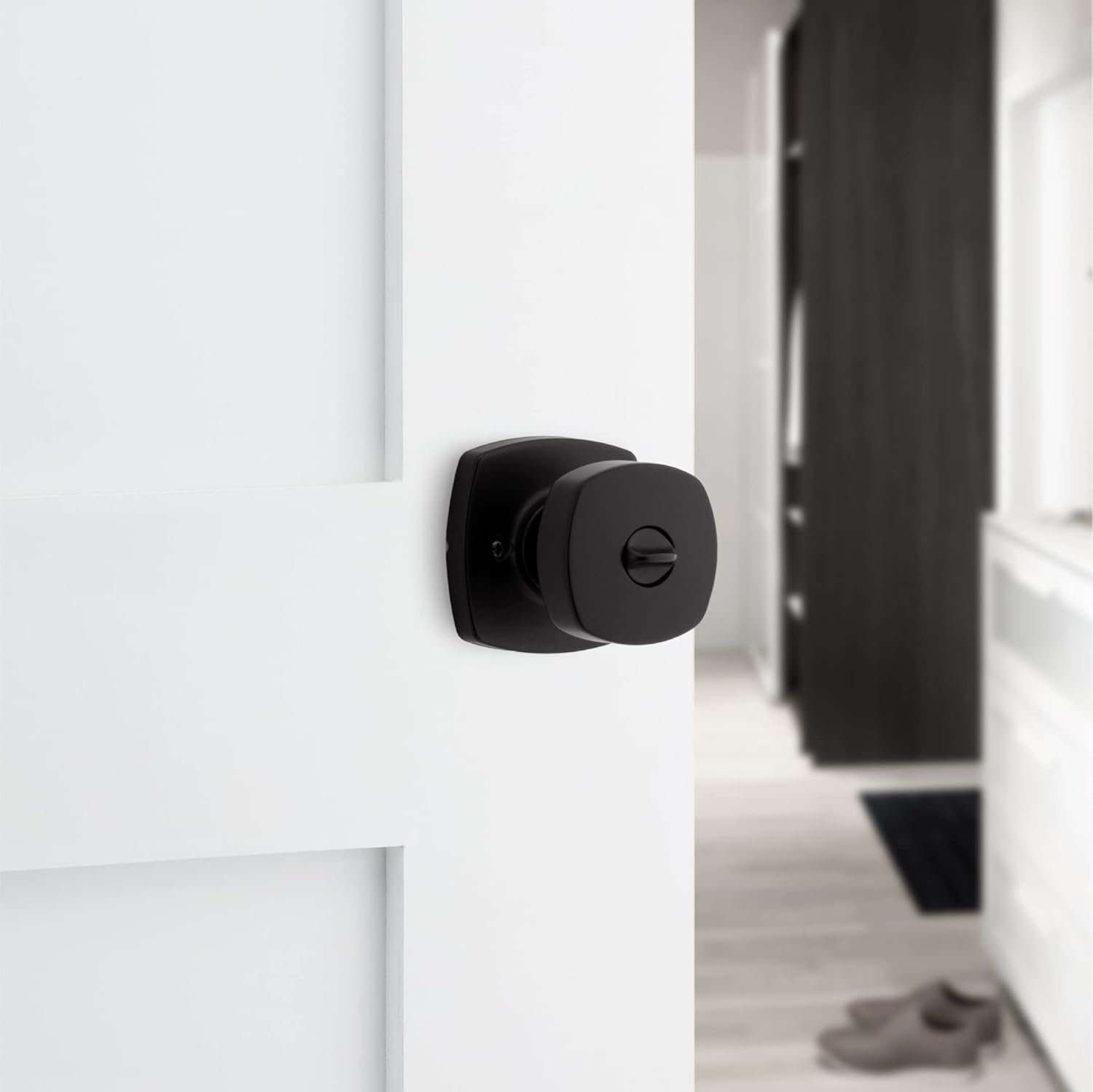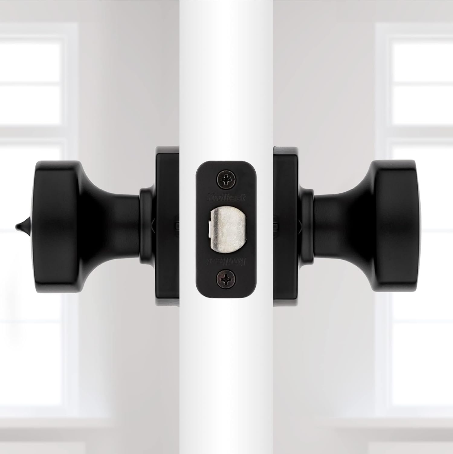 Kwikset Arroyo Knob Interior Privacy Door Knob with Lock, Door Handle For Bathroom and Bedroom, Matte Black Keyless Turn Lock Doorknob, with Microban Protection