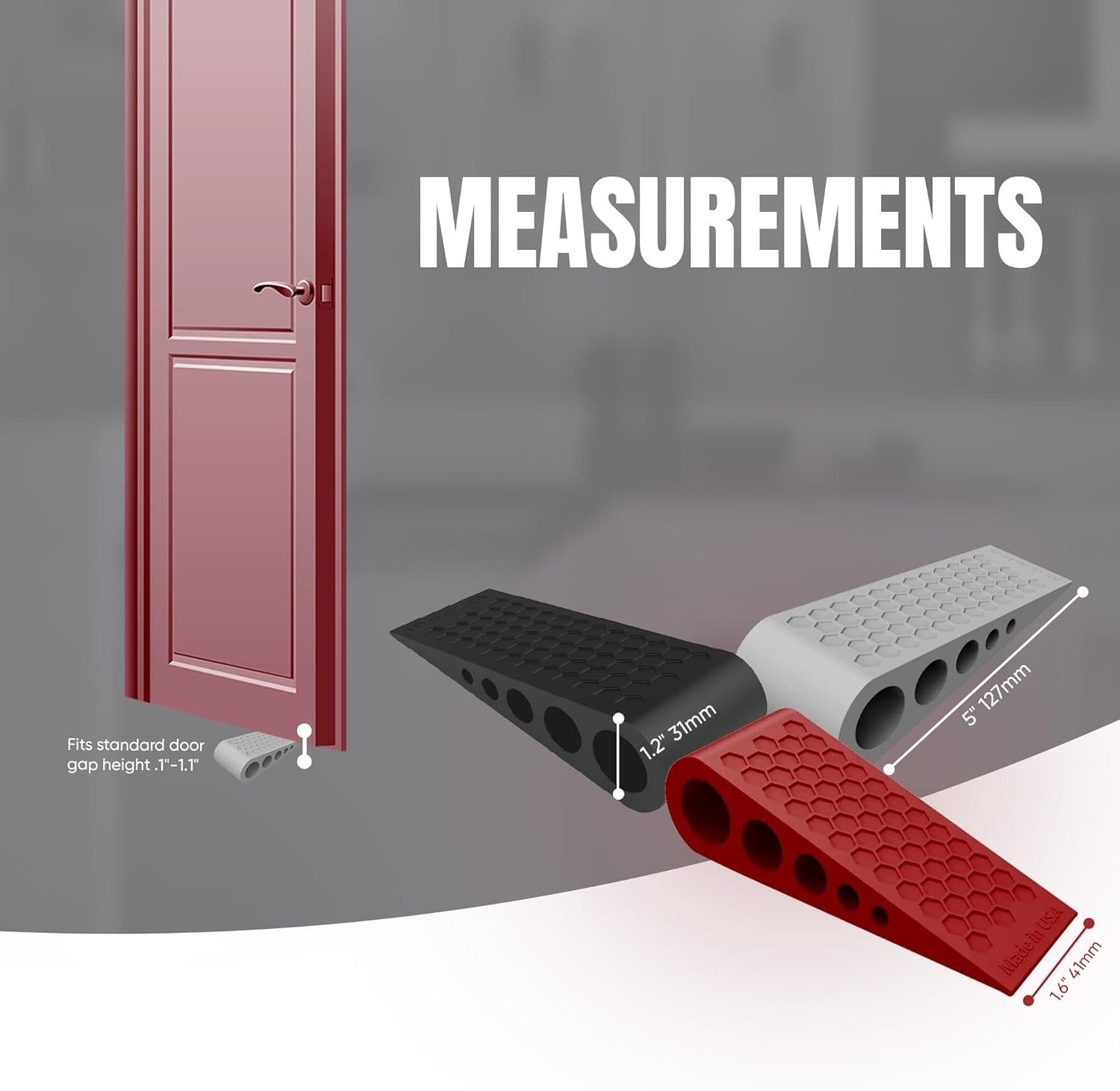 Door Stoppers for Bottom of Door Premium Floor Rubber Door Stop Wedge Made in USA Heavy Duty Honeycomb Design for Carpet, Tile, Ideal for Home, School, Commercial, Gray 2-Pack