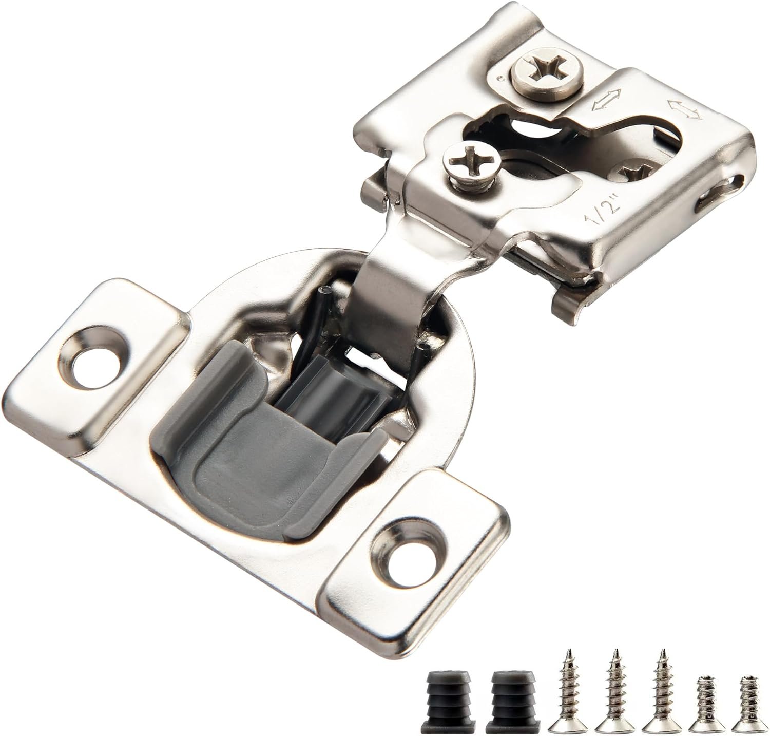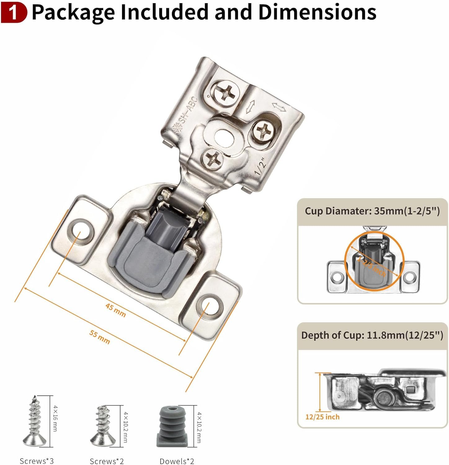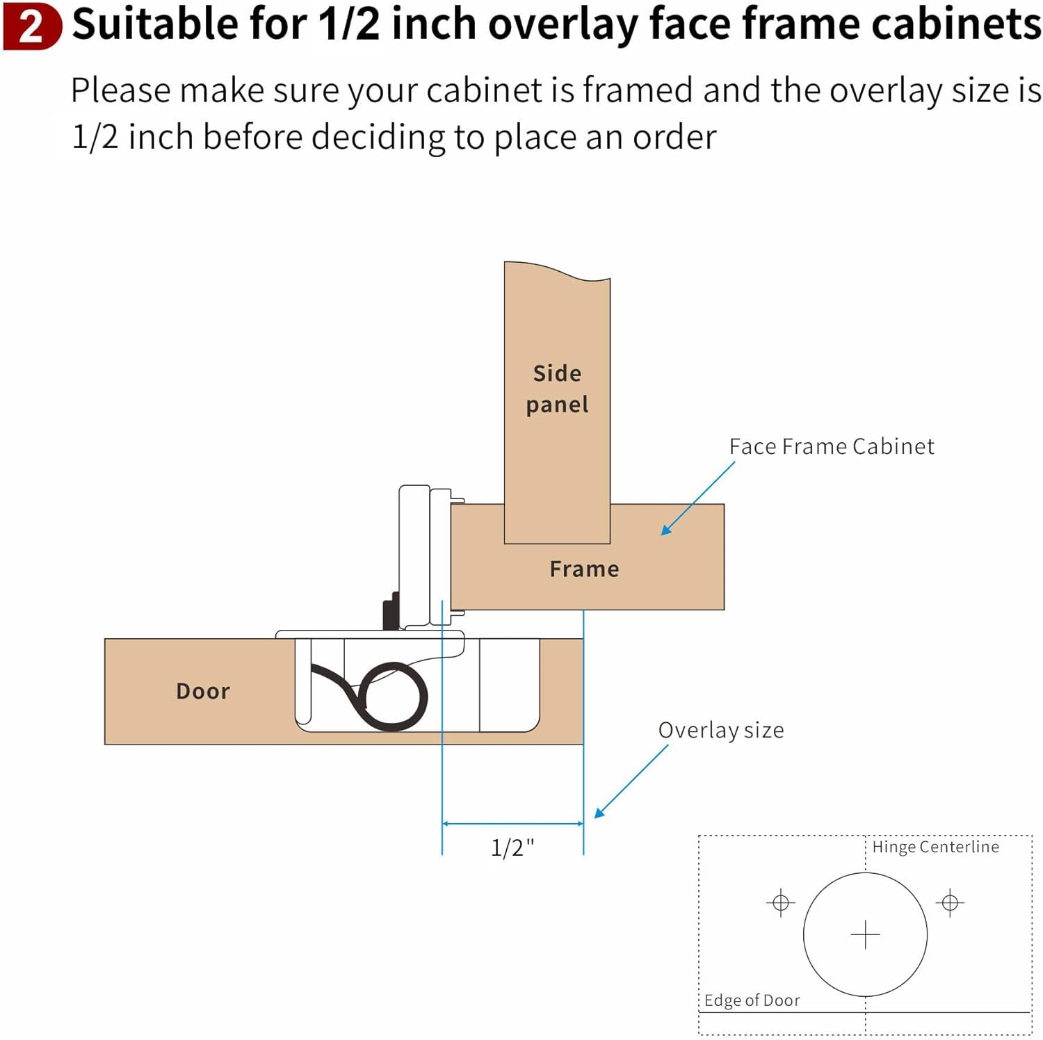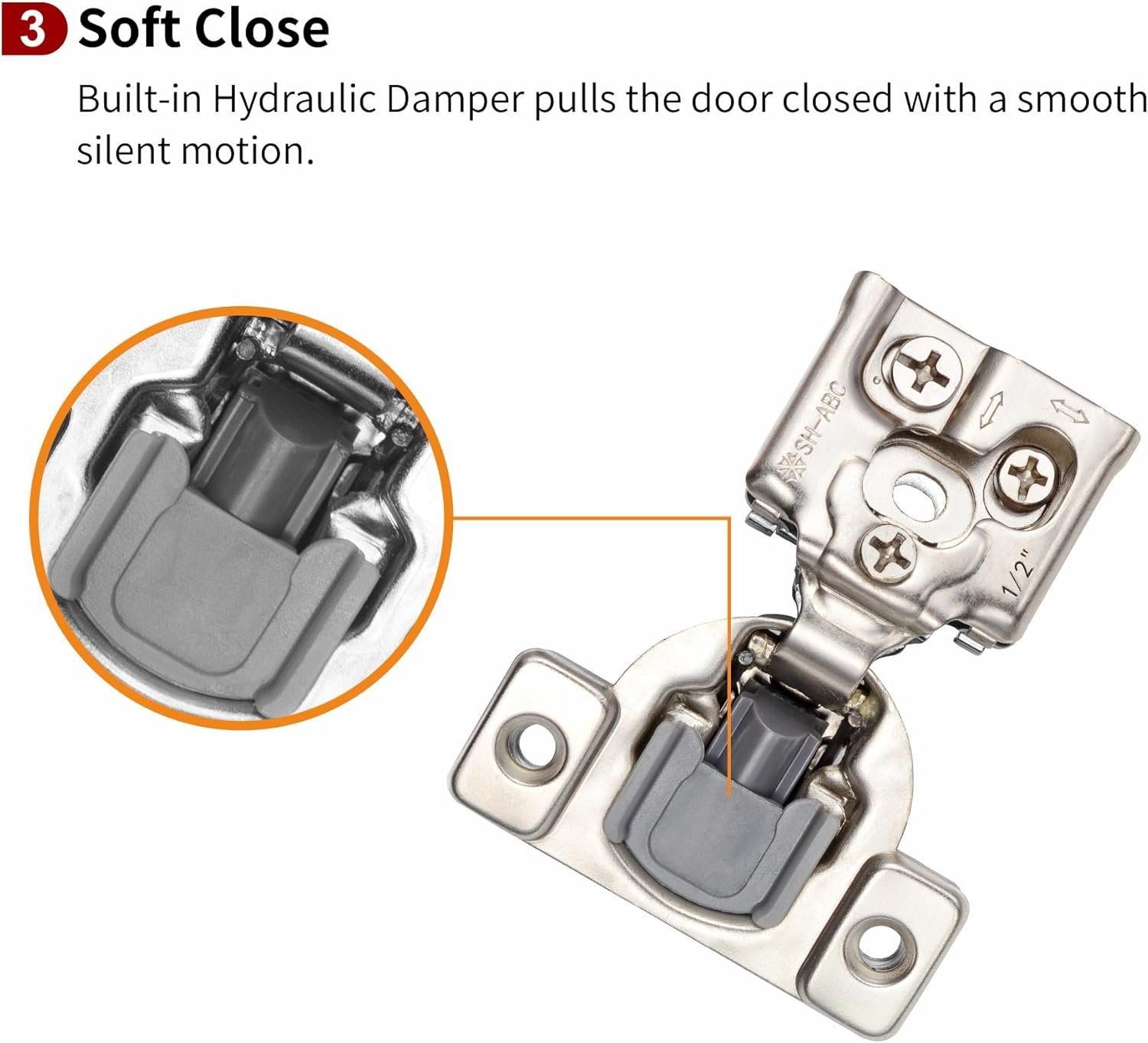 50 Pack 1/2” Overlay 3D Soft Close Hinges for Face Frame Kitchen Cabinet, 3 Way Adjustability, Quiet Self-Closing Door, 105 Degree