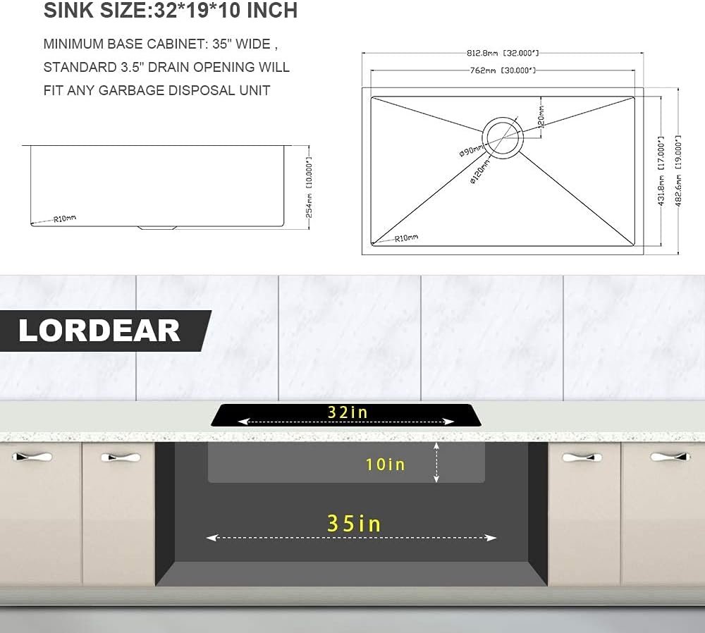 Be the first to review “32 Undermount Kitchen Sink – Lordear 32×19 Inch Undermount Sinks Stainless Steel 16 Gauge Single Bowl Under Counter Basin Round Corner Handmade Sinks”