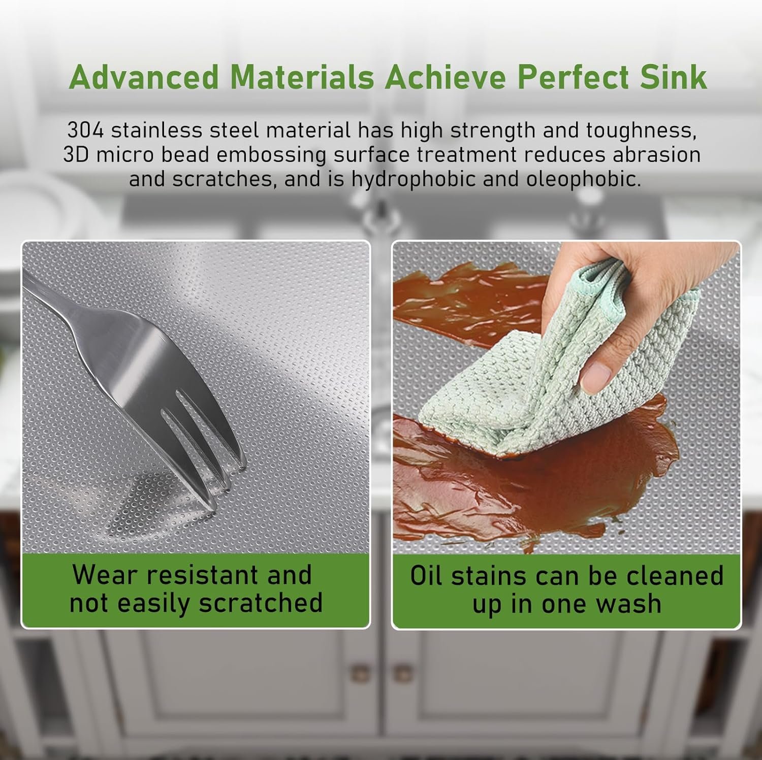 URABLE CONSTRUCTION: This sink expertly crafted from robust 18 gauge stainless steel, offering superior resistance to scratches, stains, and rust for long-lasting beauty and performance