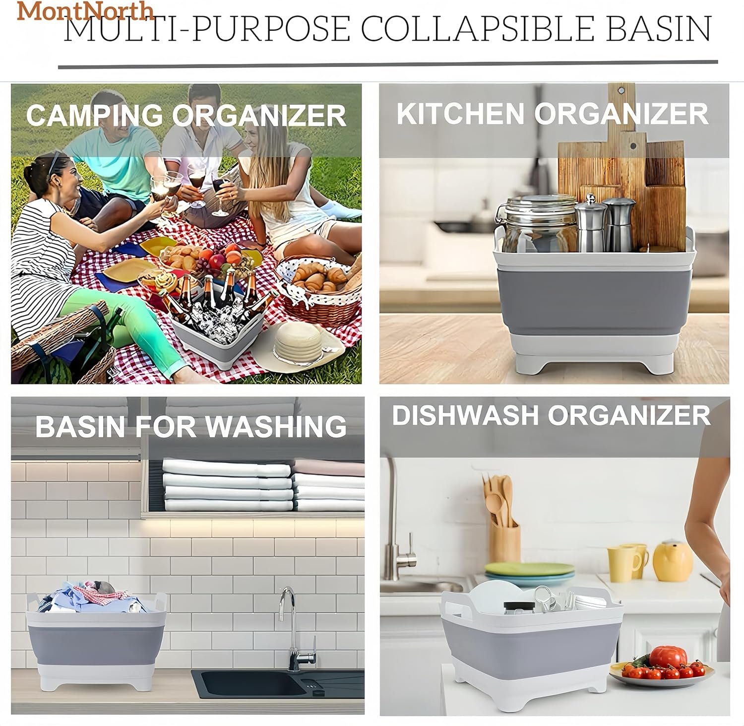 Plug & Drainer: Camping sink, kitchen sink basin is great for washing dishes, food, bucket with drain, beverage tub, bbq prep tub, laundry soaking. The collapsible dish drainer is good for basin kitchen, wash bin laundry.