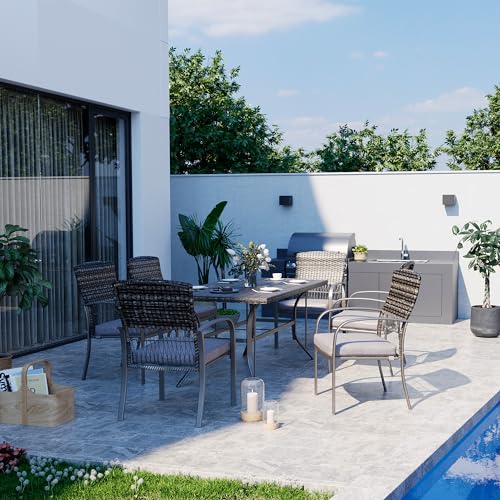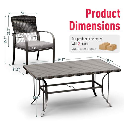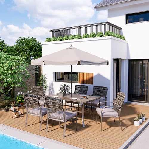 Pamapic Patio Furniture Set, 7 Piece Outdoor Dining Set, Outdoor Wicker Furniture Set with Removable Cushions for Backyard Garden Deck/Iron Slats Table Top (Grey)