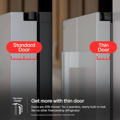 – 3-door French Door design – 45% Thinner door design – Zero Clearance design for installing in tight spaces – Dual ice makers that create ice cubes, crushed ice and Craft Ice – ThinQ app connectivity