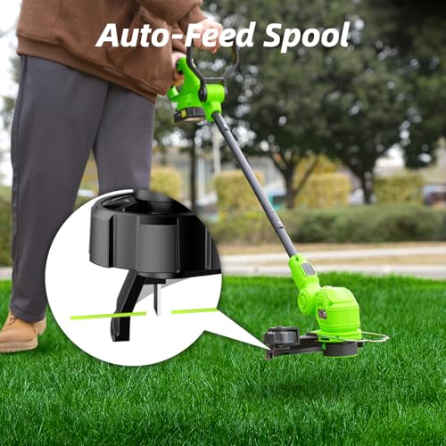 12-inch 20V Cordless String Trimmer with Charger, 2 X 2.0Ah Battery Powered Grass Mover with Auto Line Feed, 2 in 1 Lawn Edger with 8 Pcs Grass Cutter Spool Line and 2 Spool Cap, Green