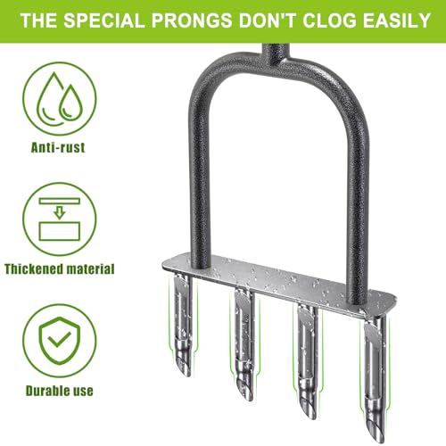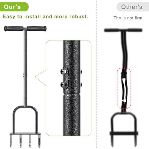 4-Plugs Design and Anti-clogging Function: This manual aerator lawn tool designed with 4 holes and each hole is semi-open to prevent soil clogging, this tool saves time and effort with a simple, efficient lawn coring tool.