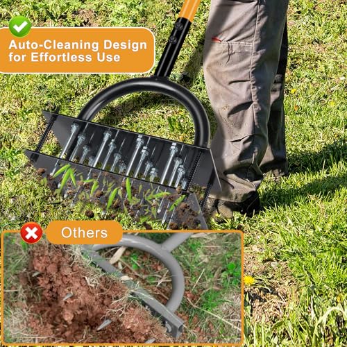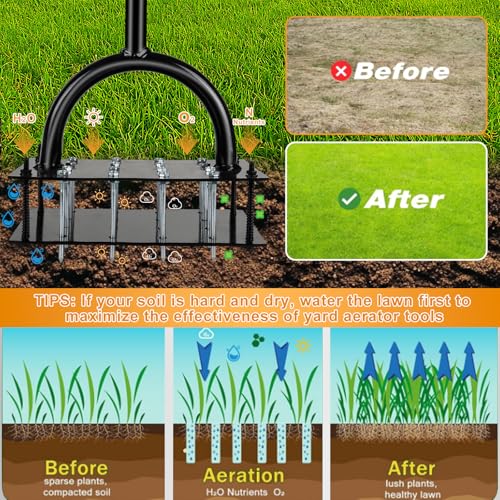 【Soil Aerator Ideal for Lawn, Garden & Backyard Use】Whether you’re loosening hardened patches, prepping for overseeding, or revitalizing tired turf, this lawn air aerator tool delivers consistent results across various yard and garden scenarios. This lawn aerator tool (grass aerator for lawn) excels in diverse applications.