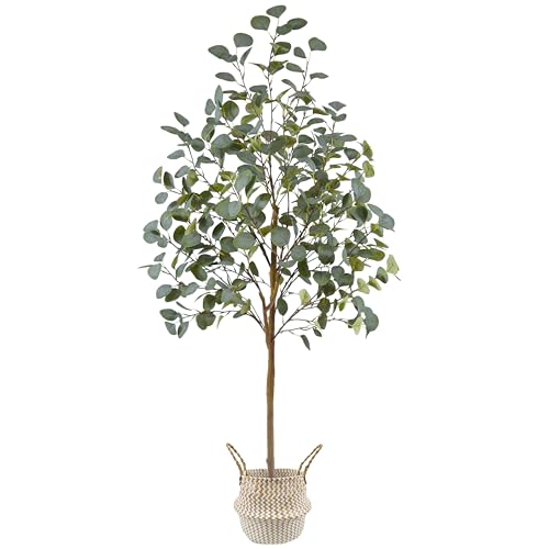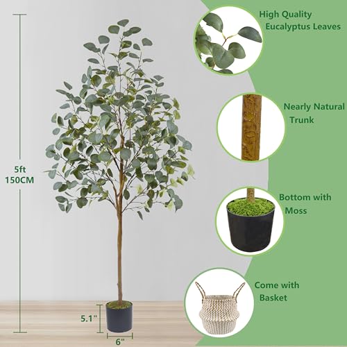 Artificial Eucalyptus Tree, 5ft Tall Mordern Fake Eucalyptus Plant with Basket, Green Silk Leaves Perfect Faux Trees for Home Office Livingroom Floor Decor Indoor Outdoor