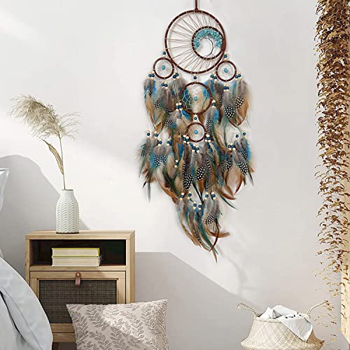 Large Dream Catchers Wall Decor for Bedroom Decor Adult Handmade with Crystal Turquoise Tree of Life Feather Dream Catcher Native American Festival Gift