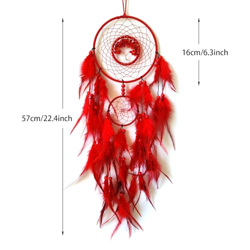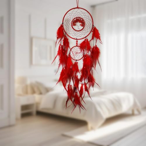 Red Dream Catcher Wall Decor Crystal Tree of Life Dream Catchers Handmade Feather Dreamcatcher Wall Hanging Ornament Art Craft for Bedroom Living Room Home Decor