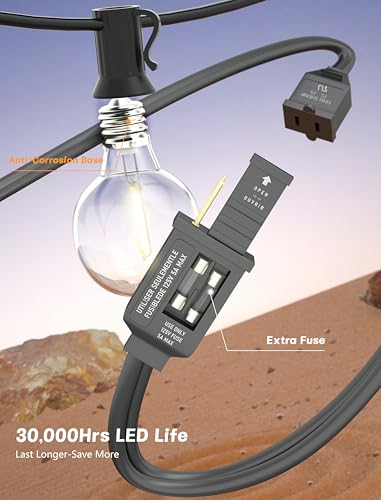 Practical & Easy to Install: This edison string lights is very easy to install with a cable tie or cup hook, fix it or place it anywhere as you need. The gazebo lights very flexible and practical, a light bulb that goes out does not affect other lighting bulbs, Safe and durable electric string light either with an E12 socket base and a built-in spare fuse for easy replacement