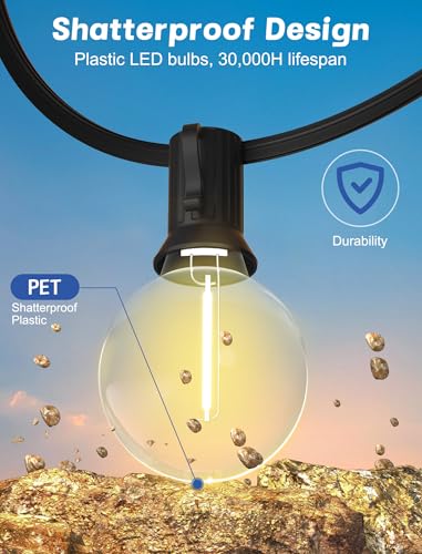 Connectable String Lights: The G40 LED outdoor patio lights is designed with end-to-end connections, you can connect 28 strands at most to cover a large area. Rating of IP44, Commercial grade high quality are perfect for permanent outdoor lighting. waterproof, shatterproof and UL certified. black string lights can withstand extreme temperatures, rain, wind or wet weather. Unlike traditional ropes, they are more durable and can be used indoors and outdoors in all seasons for many years