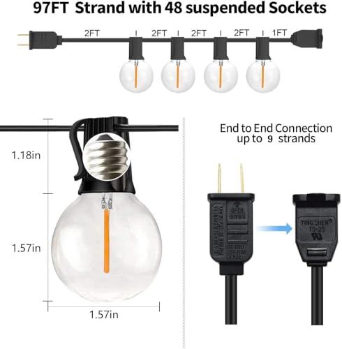 SUNTHIN Outdoor String Lights, 97FT Patio Lights with 49 G40 Shatterproof LED Bulbs(1 Spare), Waterproof Lights String for Outside Backyard, Porch, Bistro, Party, Camping, Garden Gathering