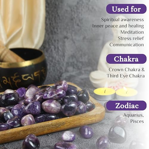 Crocon 1LB amethyst Tumbled crystals and healing stones Kit for Reiki Healing Crystal purple Polished tumble stones Chakra Balancing meditation Reiki Gifts women men DIY Home Decor Size : 20-25 mm