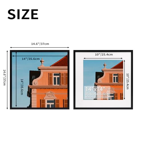 Versatile Display Options: The 14×14 picture frame is crafted to showcase your precious memories most beautifully. They are perfect for 10×10 photos and remove the mat to fit 14×14 photos, offering you flexibility and variety in your home decor.