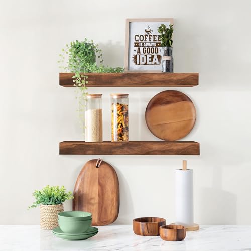 Sorbus Wood Floating Shelves for Wall – 16” Solid Wood Wall Shelves for Bathroom Decor, Books, Bedroom & Living Room – Set of 2 Walnut Wall Mounted Kitchen Shelves – Durable Solid Pine