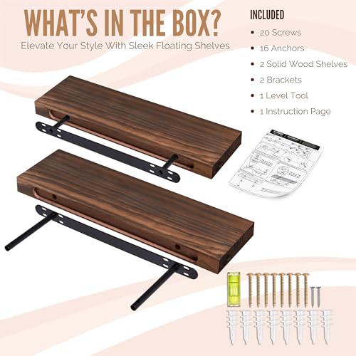 Premium 100% Solid Wood Built to Last: Made from high-quality, genuine wood! Wall mounted shelves are designed to withstand the test of time while supporting over 20 lbs per shelf. Upgrade your space with these handcrafted solid pine floating shelves, featuring natural wood grain and knots