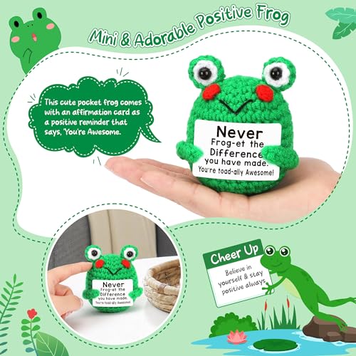 Thank You Teacher Appreciation Gifts Women Coworker Employee Retirement Leaving Going Away Farewell Gift Boss Nurse Mentor, Mother’s Day for Moms Grandma Wife Sister, Mini Positive Crochet Frog